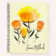 Floral fun watercolor design of happy orange and yellow abstract flower design.