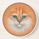The face of a fluffy orange Tabby Cat kitten with piercing blue-green eyes. Realistic artwork created from an original oil painting by animal artist Crista S. Forest.
