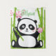 Cute smiling panda bear cub, so happy to have abundant bamboo and beautiful Sakura cherry blossoms.