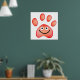 Simple graphic illustration of a cute animal paw print with a happy smiling cartoon face. Image available on various gifts and products.