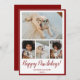 This beautiful photo collage Christmas card with 4 photos, Happy Pawlidays in a modern brush script font, a customisable sentiment, your names and the year would be perfect for sending to your friends and family. Everyone will love getting new photos of you and your dog(s). The fonts are modern and clean in red. The back is a coordinating red.