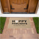 Happy Pawlidays Black and Tan Custom Dog Name Door Doormat