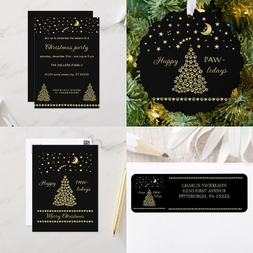 Happy Pawlidays, Gold shiny Paw Christmas treeDesigned by Milka Lovrin
