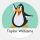 Happy Penguin Cartoon With Custom Name Classic Round Sticker