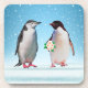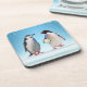 Happy Penguin Couple, One Holding Flowers Coaster