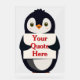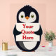 A friendly stylized penguin holds a sign with concise, attention-grabbing copy. The penguin's simple shapes, balanced silhouette, and clear facial expression convey warmth and approachability. The sign is positioned for easy readability, with generous negative space and a legible type style. The overall tone is upbeat and inviting.