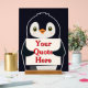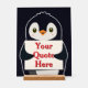 Happy penguin holding a sign to personalize