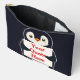 Happy penguin holding a sign to personalize accessory pouch