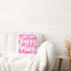 This comfy throw pillow features fun lettering and a watercolor wash.