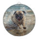 Add a fun twist to your game room with this dartboard featuring a happy pug dashing through the ocean waves. The vivid beach-themed artwork brings a playful and lighthearted vibe to your décor, perfect for pet lovers and beach enthusiasts alike. Customise the dartboard with your name, a funny phrase, or a special message to make it uniquely yours. Whether it's for your home bar, rec room, or as a gift, this dartboard is a bullseye for style and personality.