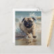 Happy Pug at the Beach customisable Postcard