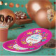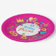 Happy Purim - Paper Plate. Translation from Hebrew: Happy Purim! Purim Jewish Holiday poster with stars of David, traditional Hamantaschen cookies, gragger toy - noisemaker, balloons, musicians, masks, Purim basket on festive confetti background. Wish a great Purim celebration. Carnival, Masquerade, Festival, Kids Party, Israel. Crafts & Party Supplies > Party Supplies > Tableware > Paper & Party Plates