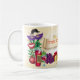 Happy Purim Festival Kids Party Carnival Vintage Decoration with Lettering and Purim Gifts Festive Gifts, Foods, Masks Illustration for Coffee Mug. Translation from Hebrew Text: Happy Purim! Purim Jewish Holiday poster, Decorative Pattern and Coloful Text. Purim gifts, Stars of David, traditional Hamantaschen cookies, gragger toy noisemaker, balloons, musicians, masks on festive confetti background. ("Mishloach Manot" - Purim) Carnival, Masquerade, Festival, Kids Party, Israel. Trendy Design for Home > Kitchen & Dining > Drinkware > Mugs & Cups Purim Festival Party Decoration. Design with text template. Personalise them by adding name or wishes text.