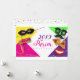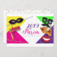 Happy Purim Modern Greeting card. Translation from Hebrew: Happy Purim! Purim Jewish Holiday poster with stars of David, traditional Hamantaschen cookies, gragger toy noisemaker, balloons, musicians, masks, Purim basket, festive confetti, fireworks colourful background. "Wish a great Purim celebration" lettering. Carnival, Masquerade, Festival, Kids Party, Israel. Invitations & Stationery > Greeting Cards > Holiday & Seasonal. Design with text template. Personalise them by adding name or wishes text.