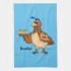 Happy quail with eggs cartoon tea towel