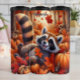 Happy Racoon in Autumn Leaves and Pumpkins Thermal Tumbler
