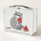 Happy racoon with watermelon metal lunch box