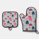 Happy Ramadan Pattern Oven Mitt & Pot Holder Set