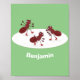 Happy red ants ice skating cartoon poster