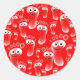 Cute illustration of lots of transparent footprints with happy faces set against a bright red background. Image available on various gifts and products.