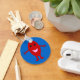 A cartoon of a smiling red grape with shiny black eyes and a pink mouth standing against a blue background with its arms open wide. A fun design for kids or a quirky novelty gift for adults.