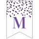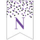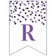 Happy Retirement banner with purple and black confetti pattern.