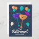 A vibrant animated scene unfolds, showcasing two cheerful cocktail glasses clinking together in celebration. Confetti bursts into the air as colorful balloons float around, creating a festive atmosphere. The camera performs a smooth zoom-in on the glasses, capturing their playful expressions. Soft, warm lighting enhances the joyful mood, while a lively background music track sets an upbeat tone. The composition is lively and colorful, embodying the spirit of retirement festivities.