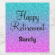 Personalised glam Happy Retirement wine label with a bright, colourful pink/ blue/ turquoise/ aqua/ lilac/ purple glitter sparkles ombre background and elegant black writing. You can easily add the name of your choice and change the colour and font of the name using the customise option!