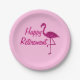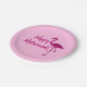 Happy retirement sparkly pink flamingo Custom text Paper Plate