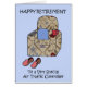 An llustration of a comfortable looking chintz patterned armchair with a pair of red and white slippers in front of it. The words 'Happy Retirement to a special Air Traffic Controller' accompany the image.