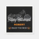 Happy Retirement party napkins on black with vintage motorcycle silhouette and orange flames with Enjoy the Ride message. Personalise with the name of your retiring biker!