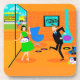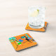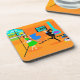 These Happy Retro Parents Cork Coasters show a mum and dad rejoicing as their child makes a dash for the school bus. The celebrating duo are in their 1960's style, mid century modern, living room. The orange decor is anything but understated. There is turquoise, cone fireplace and a bright, blue, egg chair against an orange, stone wall. On the wall, there is Mid Century Modern Globe Art Stretched Canvas Print, which is available from StrangeLittleOnion's own Zazzle store. On the floor, there is a blue and black portable record player with several vinyl albums scattered nearby. Dad, is wearing a black suit with a light blue dress shirt and darker blue tie. He is breaking out all of his best dance moves--the kind that would bring eye rolls from junior. Mum is wearing a vibrant, green dress and a flouncy, white apron with blue trim. She is standing in front of sliding glass doors cheerfully waving as her child runs down the front sidewalk towards the waiting yellow school bus. Through the doors, we can see their perfectly manicured, suburban lawn and proverbial, white picket fence. Even the background looks happy with a turquoise sky and the silhouettes of cedar trees.