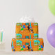 This Happy Retro Parents Wrapping Paper shows a mum and dad rejoicing as their child makes a dash for the school bus. The celebrating duo are in their 1960's style, mid century modern, living room. The orange decor is anything but understated. There is turquoise, cone fireplace and a bright, blue, egg chair against an orange, stone wall. On the wall, there is Mid Century Modern Globe Art Stretched Canvas Print, which is available from StrangeLittleOnion's own Zazzle store. On the floor, there is a blue and black portable record player with several vinyl albums scattered nearby. Dad, is wearing a black suit with a light blue dress shirt and darker blue tie. He is breaking out all of his best dance moves--the kind that would bring eye rolls from junior. Mum is wearing a vibrant, green dress and a flouncy, white apron with blue trim. She is standing in front of sliding glass doors cheerfully waving as her child runs down the front sidewalk towards the waiting yellow school bus. Through the doors, we can see their perfectly manicured, suburban lawn and proverbial, white picket fence. Even the background looks happy with a turquoise sky and the silhouettes of cedar trees.