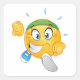 A happy running emoji with sweat coming off it. This design looks really effective on these Stickers