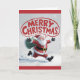Spread holiday cheer with this joyful Christmas card featuring Santa running through a snowy wonderland. With a smile on his face, eyes closed in delight, and arms outstretched, Santa is embracing the magic of the season. A bag of gifts is strapped to his back, adding to the holiday spirit. The snowy backdrop and whimsical design make this card perfect for sending warm wishes to loved ones.