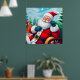 Happy Santa Claus Relaxing in Festive Sleigh Poster