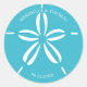 Beach theme envelope seals feature a tropical turquoise blue and white sand dollar seashell. Personalise with your name and event date (or you can put first name(s) on top, last name on the bottom instead of a date). Perfect for beach, tropical, destination, nautical, coastal themed weddings, showers and birthday invitations and a fun way to add ocean flair to your everyday mailings. Original artwork KL Stock.