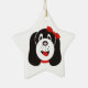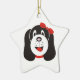 Happy silly puppy custom ornament, featuring a silly puppy with red bow on it’s head.