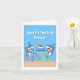 Dive into whimsical delight with this shark-themed 6th birthday card! A cheerful baby shark takes a bite out of a big number "6" atop a colourful birthday cake, balanced on a surfboard held by two happy sharks. Floating water bubbles and a sea of charming ocean friends—like a smiling octopus, curious sea turtle, and playful clownfish—bring this undersea world to life. Perfect for kids who adore sharks, sea animals, and magical ocean adventures, this fun and playful 6th birthday card is a fintastic way to celebrate a special day!