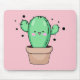 Happy smiling baby cactus in vase surrounded by stars. Kawaii style.