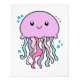 Happy smiling baby jellyfish surrounded by bubbles. Kawaii style.