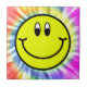 Happy Smiling Face Emoji Tie Dye Ceramic Photo Tile