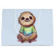 Gift bag with an adorable illustration featuring a happy looking sloth wearing a green t-shirt. Sitting cross-legged looking relaxed.