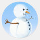 Happy Snow man stickers.  Melvin the happy snowman, with a crisp pale blue background and snow,