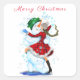 Happy Snowman and Girl Dance Tango Christmas Party Square Sticker