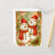 A heartwarming watercolor postcard featuring two cheerful snowmen in red hats and scarves, surrounded by holly leaves, berries, and golden stars. Perfect for spreading festive joy, friendship, and the magic of Christmas. Ideal for winter greetings or cozy seasonal wishes.