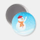 Fully customisable blue, snowy, winter holiday magnet with a happy snowman waving. The snowman is on a separate layer so it can be easily resized or moved … just click on "Customise it" button.