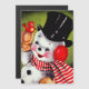 magnetic cute happy snowman character with bird vintage Christmas greeting card