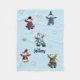 Cuddle up this winter with this cute light blue fleece blanket featuring five different happy snowmen all dressed up for winter fun, with cartoon style snowflakes, scattered around them. Personalise the blue text for a unique gift for any age.