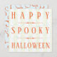 Standard 5.25" x 5.25" size flat square Halloween card template with some swirls and stripes that says, “Happy Spooky Halloween.” Change the background colours, the size and add your own copy, enjoy and boo!